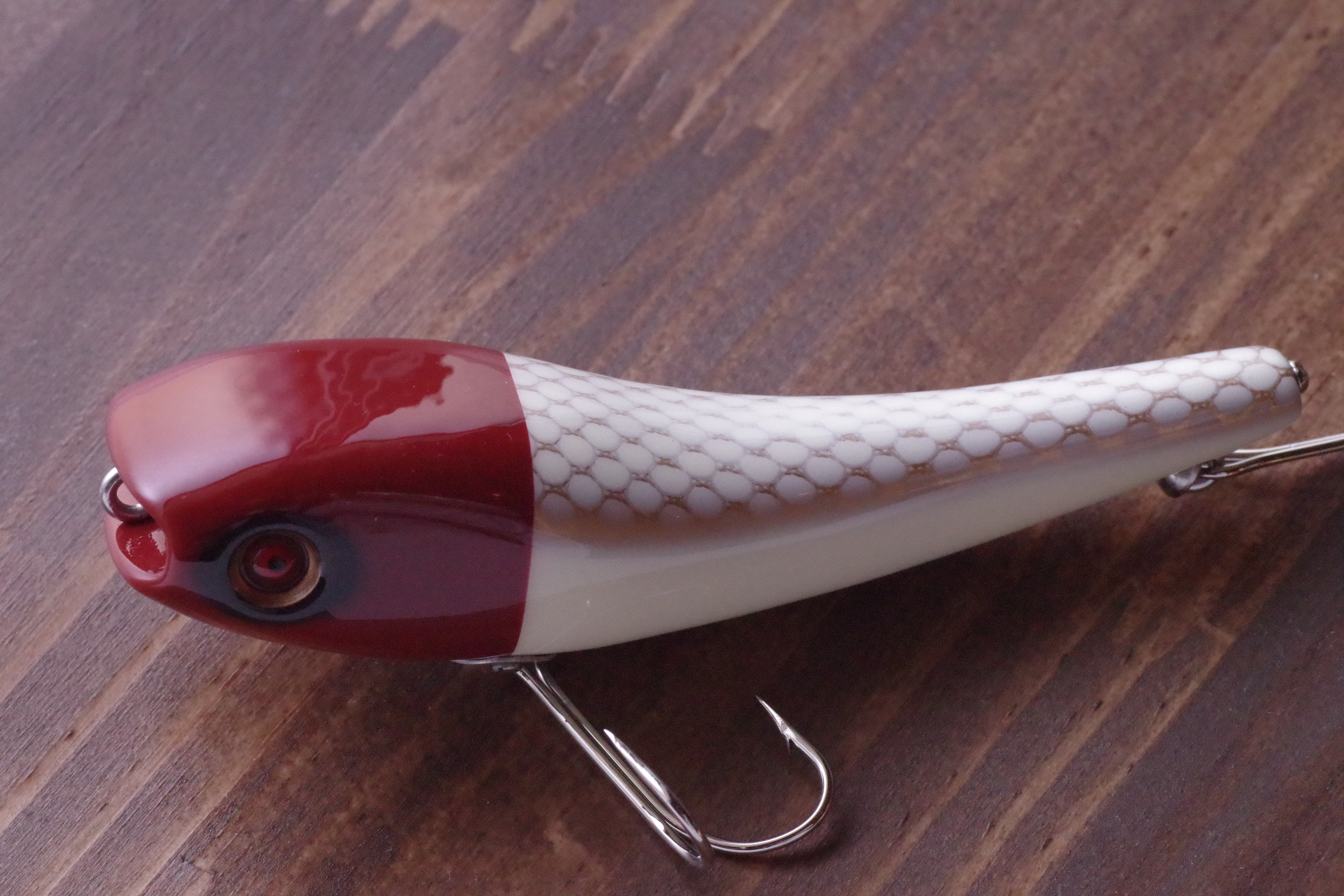 独特のヘッド形状によりさざ波だった水面でもしっかりアピールします。