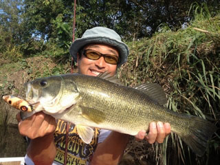 スローリトリーブでのウォブリングアクションで尻尾を艶かしくワインドさせて誘います。