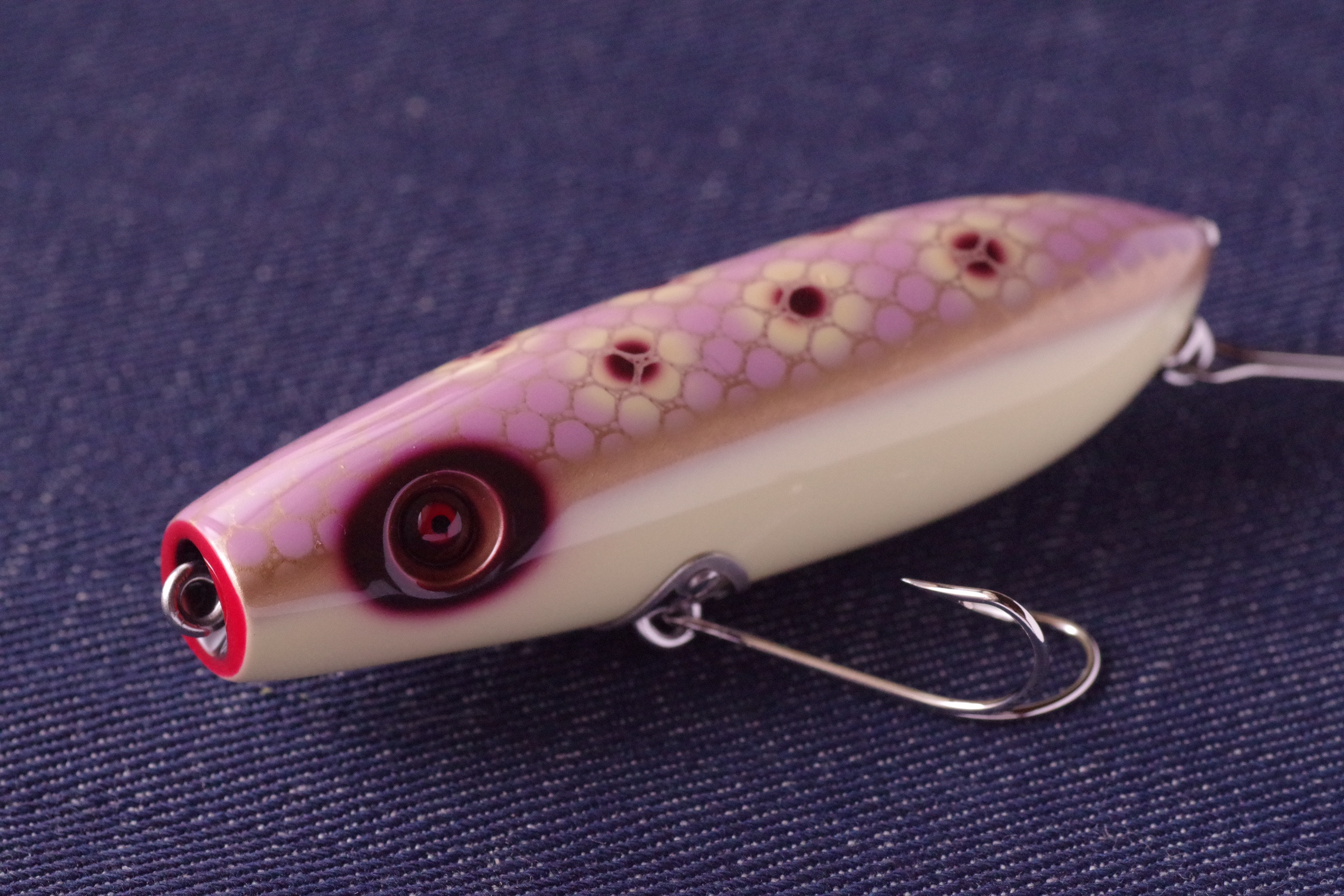 独特のヘッド形状で水絡み良く荒れた水面でもしっかりアピールします。